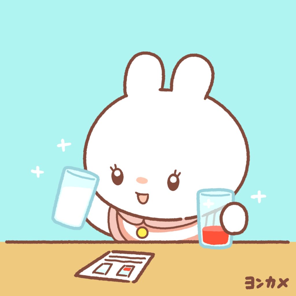 牛乳とイチゴシロップを調合する”うさぎのテトラ”。おいしくてみんなが幸せになる魔法の薬だよ。 (イラストはXに2026年2月13日投稿)